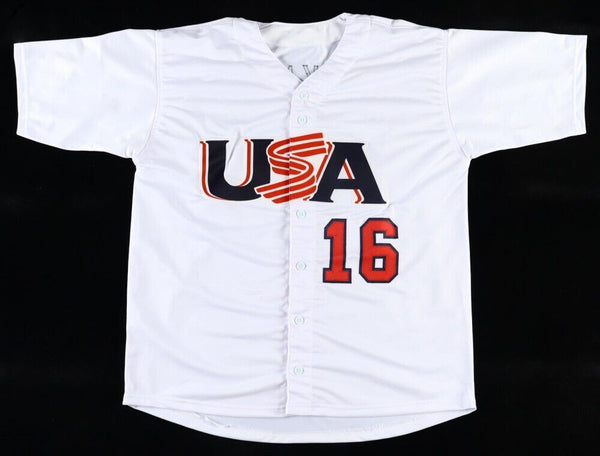 Custom on-field style jersey. Everything sewn on, size XL. Hand-signed and inscribed by Doug Mientkiewicz (Team USA).The autograph includes an official Beckett Authentication Services serially numbered hologram for authenticity purposes. The signing of this item was witnessed by Beckett.Authentication: Beckett Hologram