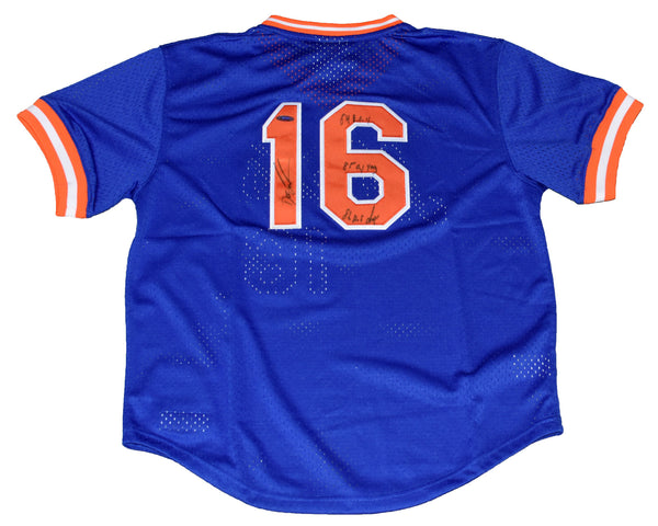 Dwight Gooden, former star pitcher for the New York Mets, has hand signed this Mets Mitchell & Ness jersey at a private signing. He included the inscriptions "84 ROY", "85 Cy Young" and "86 WS Champs". Jersey is new with tags attached and all letters/numbers are sewn-on. This item comes with a serial-numbered hologram from Tristar, one of the leaders in the industry. The authenticity can be verified online by entering the serial number. A Tristar information card is also included.Item pictured may not be the exact item you will receive. It will be similar quality, and we guarantee your satisfaction.