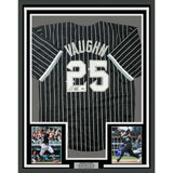 Framed Autographed/Signed Andrew Vaughn 33x42 Black City Edition Jersey BAS COA The item is professionally framed and matted with two 5x7 photos, measures 35 inches by 39 inches and is ready to be hung in your man cave! Photo and matting requests can be made.