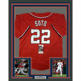 FRAMED Autographed/Signed JUAN SOTO 33x42 Washington Red Baseball Jersey JSA COA