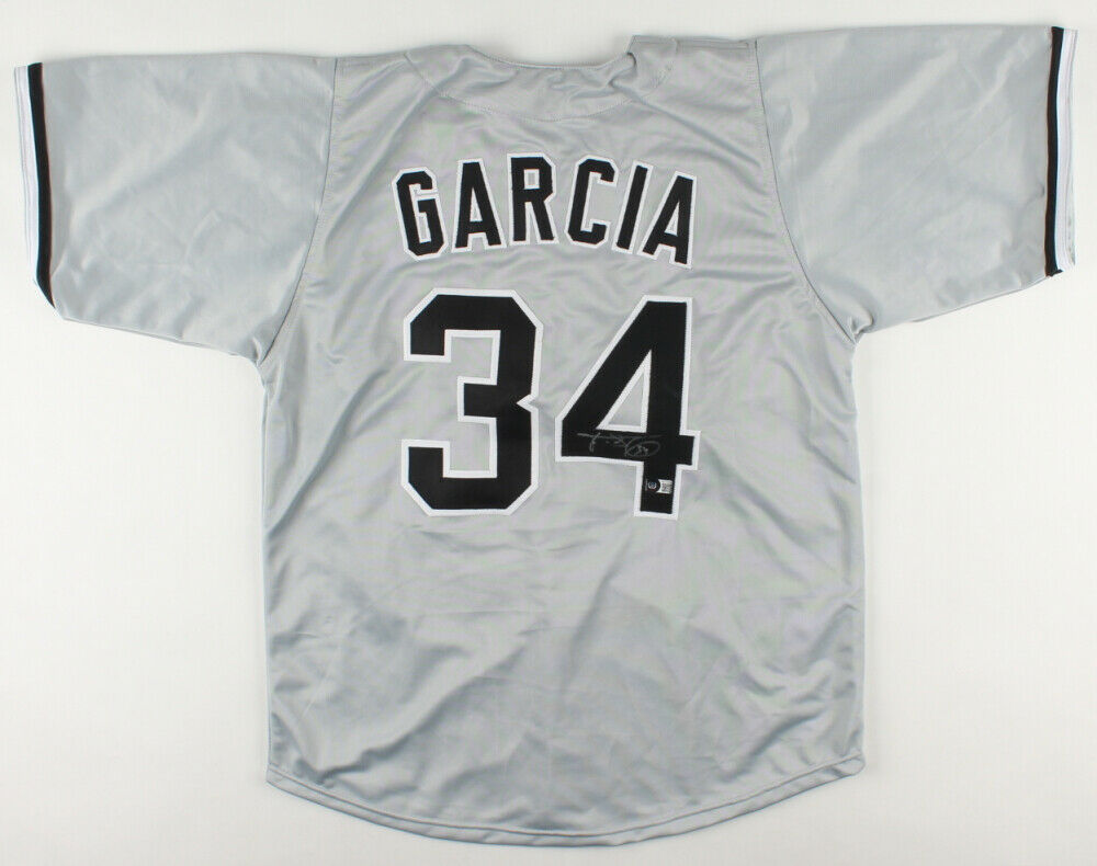 Custom on-field style jersey. Everything is sewn on, size XL. Hand-signed by Freddy Garcia.The lot / autograph(s) includes an official Beckett Authentication Services serially numbered hologram for authenticity purposes. The signing of this item was witnessed by Beckett.Authentication: Beckett Hologram