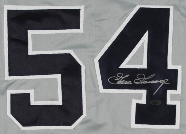 Custom on-field style jersey. Everything sewn on, size XL. Hand-signed in silver paint pen by Goose Gossage (HOF). The lot / autograph(s) includes an official Leaf hologram and matching COA for authenticity purposes.Authentication: Leaf COA
