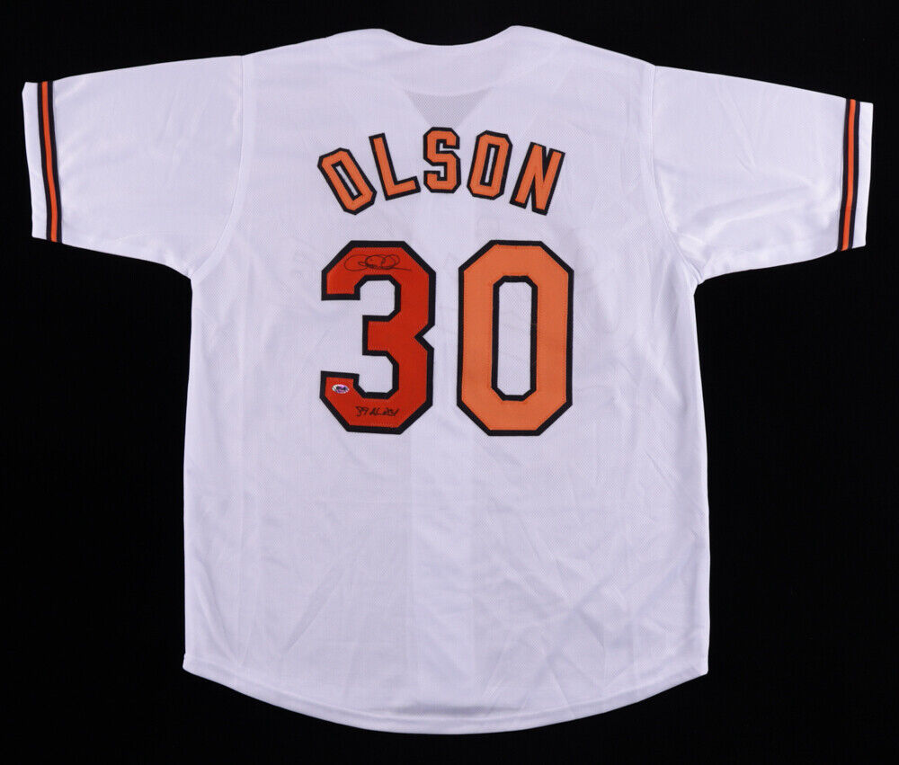 Custom on-field style jersey. Everything is sewn on, size XL. Has been hand-signed and inscribed by Greg Olson.The lot / autograph(s) includes an official Rochester Sports Autographs hologram for authenticity purposes.Authentication: RSA Hologram