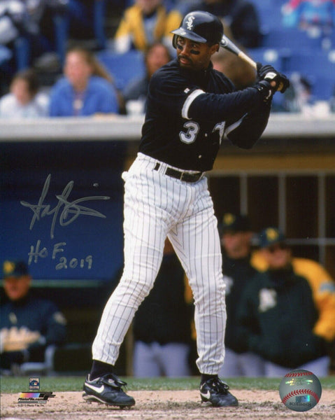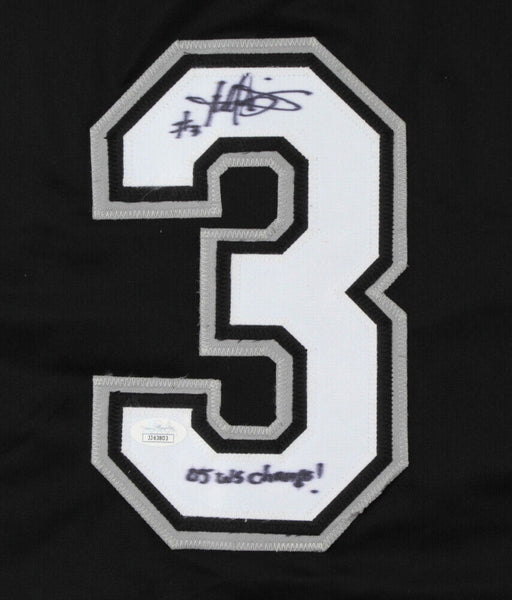 This autographed jersey has been personally hand-signed by Harold Baines of the Chicago White Sox. Baines added the inscription "05 WS Champs!" along with his signature. This autograph is certified by James Spence Authentication (JSA). It comes with the numbered hologram and matching Certificate of Authenticity.