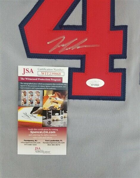 Custom on-field style jersey. Everything is sewn on, size XL. Hand-signed in silver paint pen by Ian Anderson. The lot / autograph(s) includes an official James Spence Authentication (JSA) hologram and matching COA for authenticity purposes. The signing of this item was witnessed by JSA.Authentication: JSA COA