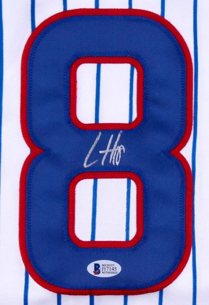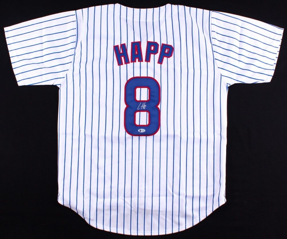 Custom on-field style jersey. Everything is sewn on, size XL. Hand-signed in silver paint pen by Ian Happ. The lot / autograph(s) includes an official Beckett Authentication Services serially numbered hologram and matching COA for authenticity purposes. Authentication: Beckett COA