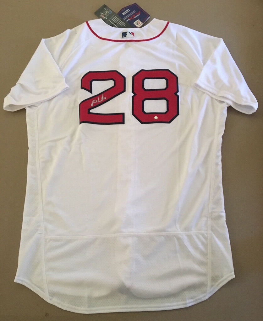 J.D. MARTINEZ Autographed Boston Red Sox Authentic White Jersey - STEINER SPORTS AUTHENTICATED This authentic jersey is signed by Red Sox Outfielder JD Martinez. Martinez is making a name for himself in Fenway after being a key off-season addition showcasing his extraordinary power to all fields. The signature on this item has been authenticated by Steiner Sports and features a uniquely numbered tamper proof hologram which can be verified in our online database. This process ensures your item is authentic and prevents duplication and fraud. MONEY BACK GUARANTEE! If for any reason you are not completely satisfied with the quality or authenticity of your purchase, we will gladly give you a full refund or exchange, whichever you prefer up to 30 days after purchase. Please feel free to e-mail us with any questions. Thank you. Authenticator Pre-Certified Authenticator: Steiner Sports Authenticated History of item: Martinez has signed this item in the presence of a representative from Steiner Sports. Describe how you came to possess this item: Super Sports Center is a fully authorized dealer for Upper Deck Authenticated as well as Mounted Memories and Steiner Sports. Other information about you and / or the item: Super Sports Center strives to deliver the most authentic in sports memorabilia from trusted companies like Mounted Memories, Steiner Sports and Upper Deck Authenticated. If it exists, we can find it for you!