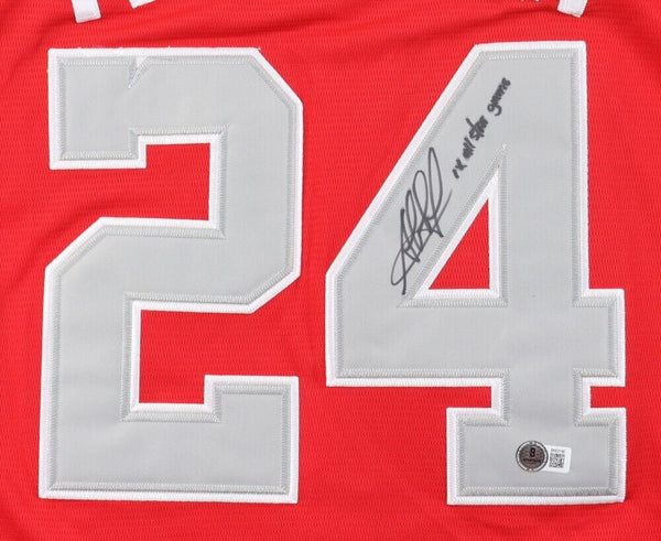 Majestic jersey. Everything is sewn on, size XL. Hand-signed and inscribed by Jesus Aguilar.The autograph includes an official Beckett Authentication Services serially numbered hologram for authenticity purposes.Authentication: Beckett Hologram