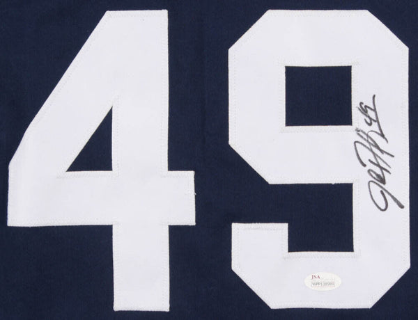 Custom on field style jersey. Everything is sewn on, size XL. Hand-signed in black paint pen by John Rocker.During an interview, he spoke of his opinion of the Mets and their fans: Nowhere else in the country do people spit at you, throw bottles at you, throw quarters at you, throw batteries at you and say, "Hey, I did your mother last night--she's a whore." I talked about what degenerates they were and they proved me right. The lot / autograph(s) includes an official James Spence Authentication (JSA) hologram and matching COA for authenticity purposes. The signing of this item was witnessed by JSA.Authentication: JSA COA Check out over 5,000 other autographed items at our online store (confinescollectibles.com). Thanks for looking!