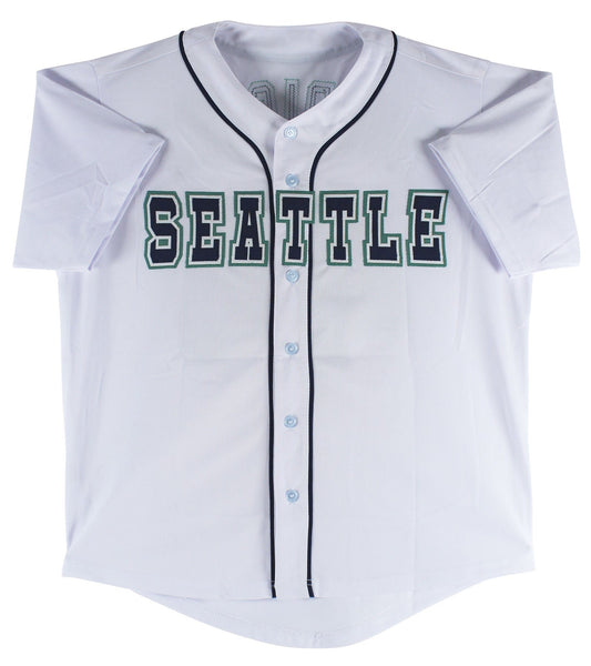 This Autographed White Pro Style Jersey has been Personally Signed by Julio Rodriguez of the Seattle Mariners. This item is 100% Authentic to include a Certificate of Authenticity (COA) / hologram by JSA. We have multiples of this same item. While the photographs are representative of this item, the size, placement and strength of the signature may vary. Each item is hand signed, therefore, each autograph is unique. This is a X-Large sized, non-branded, custom-stitched Jersey.