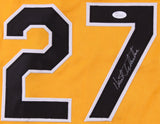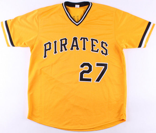 Custom on-field style jersey. Everything sewn on, size XL. Hand-signed in silver paint pen by Kent Tekulve. The autograph includes an official James Spence Authentication (JSA) hologram and matching COA for authenticity purposes. The signing of this item was witnessed by JSA.Authentication: JSA COA