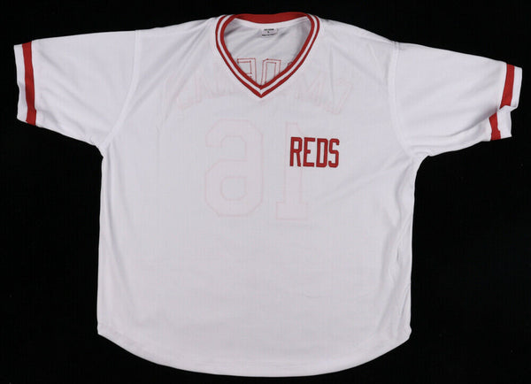 Custom on-field style jersey. Everything is sewn on, size XL. Hand-signed in black felt-tip pen by Leo Cardenas. The autograph includes an official James Spence Authentication (JSA) hologram and matching COA for authenticity purposes. Authentication: JSA COA