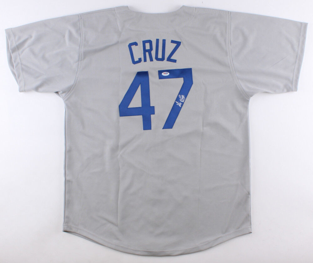 Custom on-field style jersey. Everything is sewn on, size XL. Hand-signed in silver paint pen by Luis Cruz. The lot / autograph(s) includes an official PSA/DNA hologram and matching COA for authenticity purposes.Authentication: PSA COA