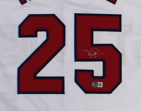 A St. Louis Custom White Jersey hand signed by Mark McGwire. The item and signature are in excellent condition. Mark is a 12x ALL-Star, 2x World Series Champion (1989,2011), All-Rookie of the Year in 1987, a Gold Glove Award (1990) & 3x Sliver Slugger Award (1992,1996,1998). AUTHENTICATION: The item is accompanied by a Beckett Serial Numbered and Databased Hologram