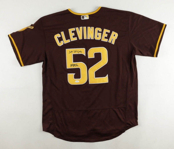 On-field style jersey, everything sewn on, size 48. Has been hand-signed and inscribed by Mike Clevinger.The lot / autograph(s) includes an official James Spence Authentication (JSA) hologram and matching COA for authenticity purposes.Authentication: JSA COA