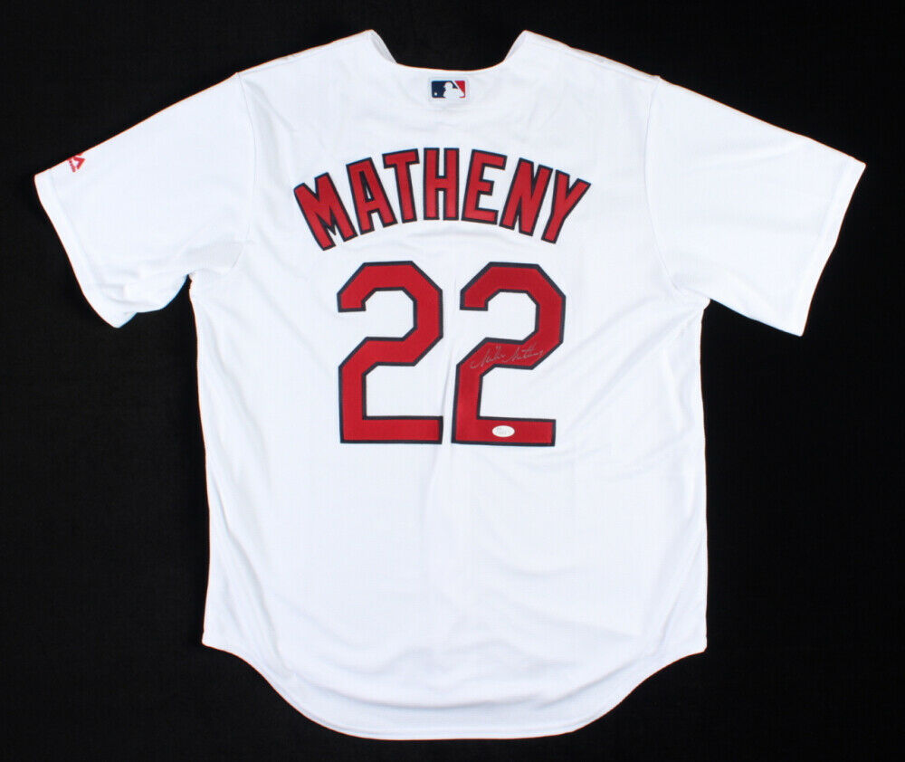 Majestic on-field style jersey. Everything is sewn on, size L. Hand-signed by Mike Matheny (St. Louis Cardinals).The lot / autograph(s) includes an official James Spence Authentication (JSA) hologram and matching COA for authenticity purposes.Authentication: JSA COA