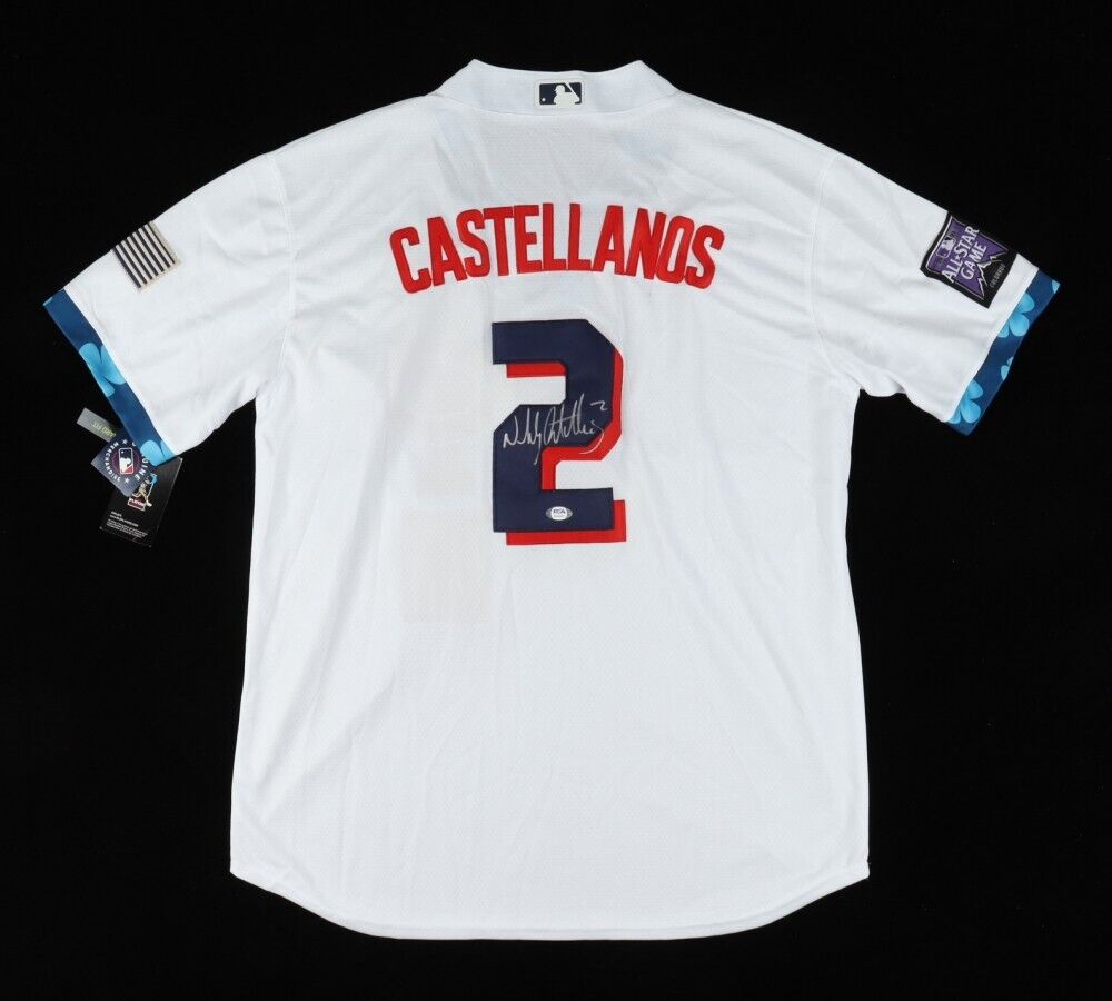 On-field style jersey. Everything is sewn on, size L. Hand-signed by Nick Castellanos.The lot / autograph(s) includes an official PSA/DNA hologram and matching COA for authenticity purposes.Authentication: PSA COA