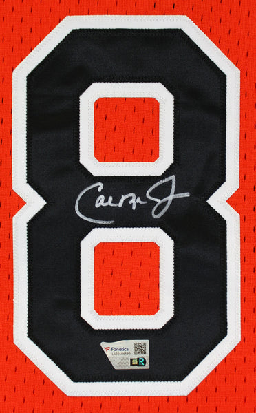 This Autographed Orange Batting Practice Nike Jersey has been Personally Signed by Cal Ripken Jr. of the Baltimore Orioles. This item is 100% Authentic to includes a numbered hologram by Fanatics. We conducted an autograph signing with Cal Ripken Jr. where multiples of the same item were signed. While the photographs are representative of this item, the size, placement and strength of the signature may vary. Each item is hand signed, therefore, each autograph is unique. This item can be verified through Fanatics. This is a X-Large sized Jersey.