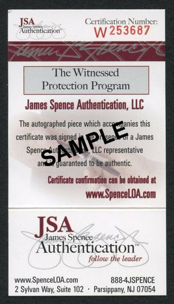 This autographed jersey has been personally hand-signed by Rafael Palmeiro of the Chicago Cubs. This autograph is certified by James Spence Authentication's (JSA) Witnessed Protection Program. That means that a JSA representative was present when this item was signed. It comes with the numbered hologram and matching Certificate of Authenticity.