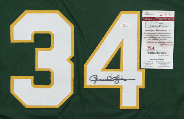 Custom on-field style jersey. Everything sewn on, size XL. Hand-signed in silver paint pen by Rollie Fingers (HOF). The autograph includes an official James Spence Authentication (JSA) hologram and matching COA for authenticity purposes. The signing of this item was witnessed by JSA.Authentication: JSA COA