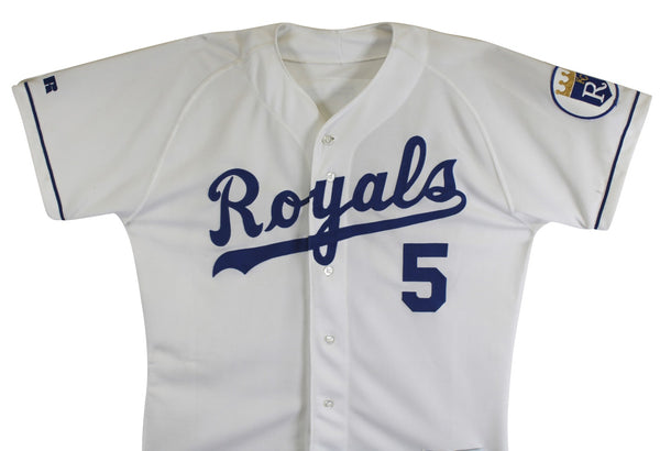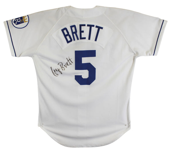 This Autographed White Russell Athletic Authentic Diamond Collection Jersey has been Personally Signed by George Brett of the Kansas City Royals. This item is 100% Authentic to include a hologram by Beckett Authentication Services. This item will come with an affixed Beckett Authentication Services (BAS) authentication sticker, which includes a scannable QR code to verify authenticity. Please note that Beckett no longer provides serial-numbered COA cards, and the attached BAS sticker will serve as the complete authentication for this item. The authenticity can be verified on Beckett Authentication Services website.