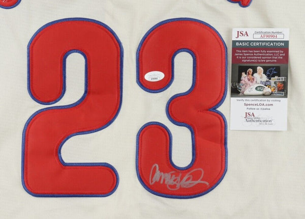 Custom on-field style jersey. Everything is sewn on, size XL. Hand-signed by Ryne Sandberg (Chicago Cubs, HOF).The lot / autograph(s) includes an official James Spence Authentication (JSA) hologram and matching COA for authenticity purposes. The signing of this item was witnessed by JSA.Authentication: JSA COA