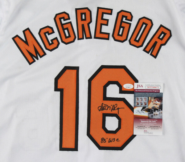 Custom on-field style jersey. Everything is sewn on, size XL. Hand-signed and inscribed by Scott McGregor.The lot / autograph(s) includes an official James Spence Authentication (JSA) hologram and matching COA for authenticity purposes. The signing of this item was witnessed by JSA.Authentication: JSA COA