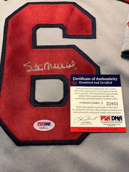 Official Majestic MLB signed jersey. Everything sewn on, size L. Hand-signed in silver paint-pen by Stan the Man Musial H.O.F. / 3,000 hit Club ( St. Louis Cardinals). (Died 2013 age 92)The autograph includes an official PSA/DNA hologram and matching COA for authenticity purposes.Authentication: PSA COA