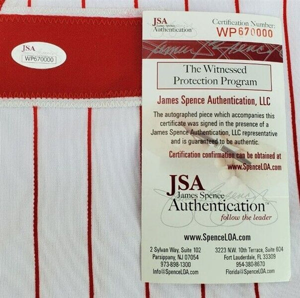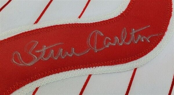 Custom on-field style jersey. Everything sewn on, size XL. Hand-signed in silver paint pen by Steve Carlton (HOF). The lot / autograph(s) includes an official James Spence Authentication (JSA) hologram and matching COA for authenticity purposes. The signing of this item was witnessed by JSA.Authentication: JSA COA