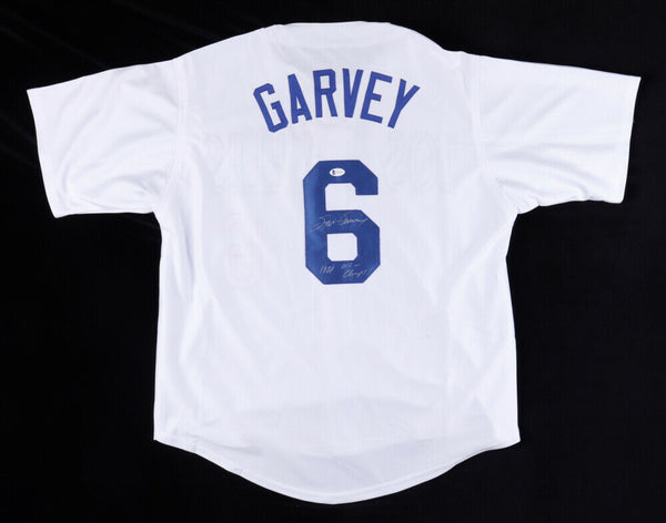 On-field style jersey. Everything is sewn on, size XL. Hand-signed and inscribed by Steve Garvey.The lot / autograph(s) includes an official Beckett Authentication Services serially-numbered hologram and matching COA for authenticity purposes. The signing of this item was witnessed by Beckett.Authentication: Beckett COA