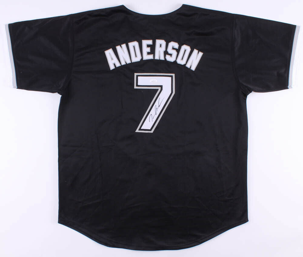 Custom on-field style jersey. Everything is sewn on, size XL. Hand-signed in black Sharpie pen by Tim Anderson. The lot / autograph(s) includes an official James Spence Authentication (JSA) hologram and matching COA for authenticity purposes. The signing of this item was witnessed by JSA.Authentication: JSA COA