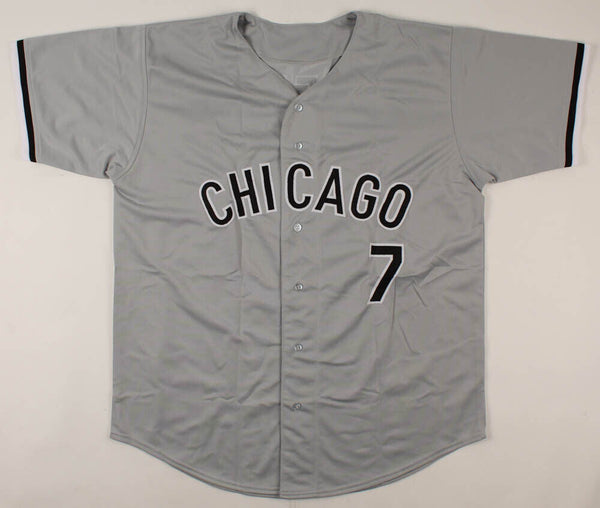 Custom on-field style jersey. Everything is sewn on, size XL. Hand-signed in silver paint pen by Tim Anderson. The lot / autograph(s) includes an official James Spence Authentication (JSA) hologram and matching COA for authenticity purposes. The signing of this item was witnessed by JSA.Authentication: JSA COA