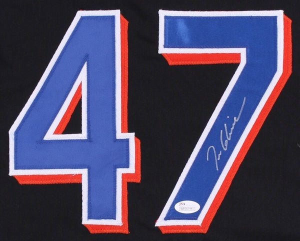 Custom on-field style jersey. Everything is sewn on, size XL. Hand-signed in silver felt-tip pen by Tom Glavine (Atlanta Braves, New York Mets, HOF). The autograph includes an official James Spence Authentication (JSA) hologram and matching COA for authenticity purposes. The signing of this item was witnessed by JSA.Authentication: JSA COA Shop our ebay store / Confines Collectibles for thousands of different autographed jerseys