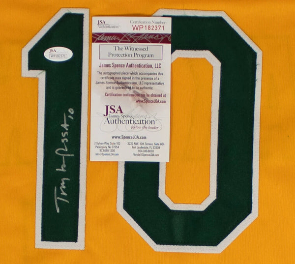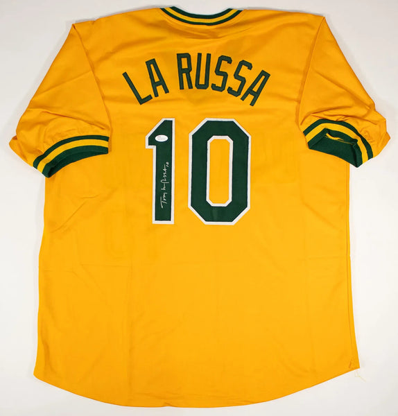 Custom on-field style jersey. Everything is sewn on, size XL. Hand-signed in silver paint pen by Tony La Russa (Chicago White Sox, Oakland A's, St. Louis Cardinals, HOF).The autograph includes an official James Spence Authentication (JSA) hologram and matching COA for authenticity purposes. The signing of this item was witnessed by JSA.Authentication: JSA COA