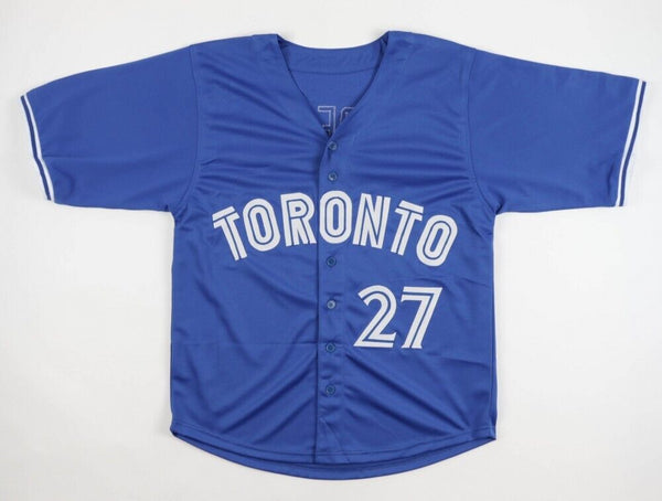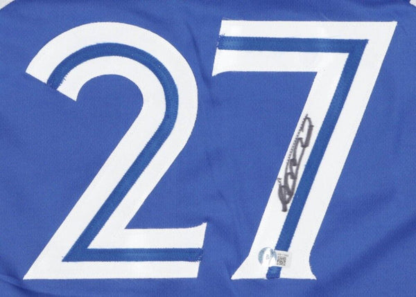 Custom on-field style jersey. Everything sewn on, size XL. Hand-signed by Vladimir Guerrero Jr.The lot / autograph(s) includes an official Beckett Authentication Services serially numbered hologram for authenticity purposes. The signing of this item was witnessed by Beckett.Authentication: Beckett Hologram