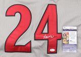 Majestic jersey with everything sewn on, size 52. Hand-signed by Yasmany Tomas.The autograph(s) includes an official James Spence Authentication (JSA) hologram and matching COA for authenticity purposes.Authentication: JSA COA