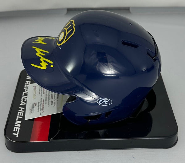 Rawlings Mini helmet by Milwaukee Brewers Hall of Fame Commissioner BUD SELIG. This item is signed in Yellow paint pen. This item was signed at a private signing and would make a great addition to any Brewers collection. This autograph is guaranteed to be 100% authentic and will include a COA from JSA authentication.