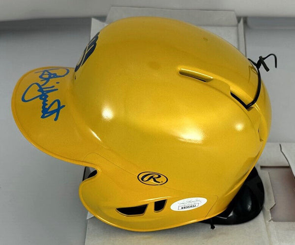 Rawlings Mini helmet by Milwaukee Brewers Hall of Famer ROBIN YOUNT. This item is signed in Blue paint pen. This item was signed at a private signing and would make a great addition to any Brewers collection. This autograph is guaranteed to be 100% authentic and will include a COA from JSA authentication.