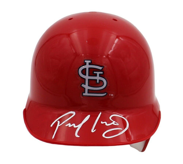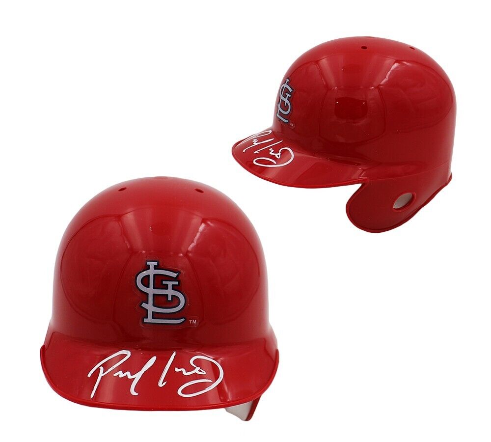A St. Louis Cardinals Rawlings MLB Mini Helmet signed by Paul Goldschmidt. The item and signature are in excellent condition. Paul Goldschmidt is an American professional baseball player, known for his impressive career as a first baseman. He played college baseball at Texas State University before being drafted by the Arizona Diamondbacks in 2009. Goldschmidt has earned multiple All-Star selections and Gold Glove Awards. AUTHENTICATION: The item is accompanied by a Fanatics Authentic Serial Numbered and Databased Hologram