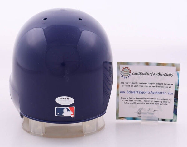 Rawlings Chicago Cubs mini batting helmet has been hand-signed by Sammy Sosa.The autograph(s) includes an official Schwartz Sports Hologram and matching COA for authenticity purposes.Authentication: Schwartz Sports COA