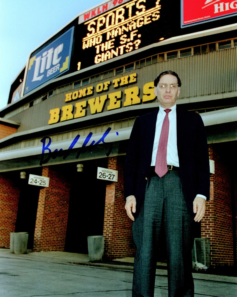 An 8x10 hand signed photo of MILWAUKEE BREWERS Owner and Former MLB Commissioner BUD SELIG. The signature is in Blue Sharpie. This item was signed at a private signing with us. This would make a great addition to any BREWERS collection! This item is guaranteed to be 100% authentic and will include a COA from Waukesha Sportscards with matching tamper proof holograms.