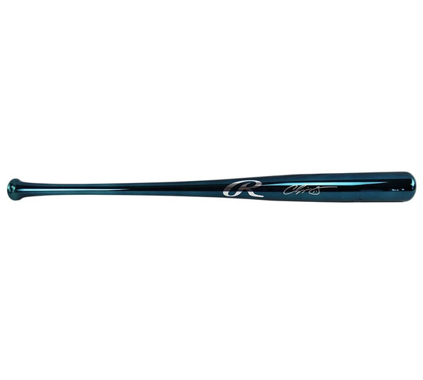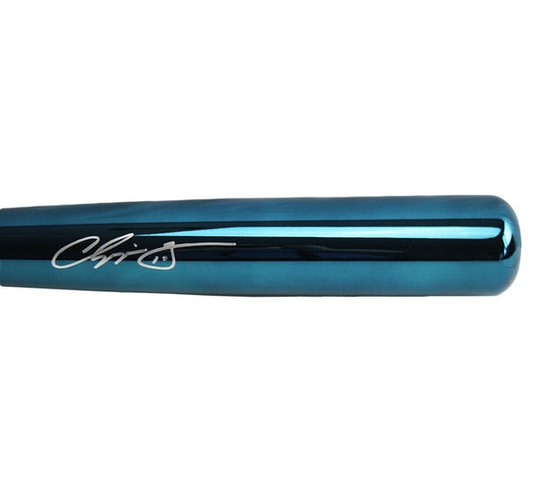 An Atlanta Braves Rawlings Blue Chrome MLB Bat hand signed by Chipper Jones. The item and signature are in excellent condition. Chipper is an 8X All-Star, World Series Champ, 2X Silver Slugger and 1999 National League MVP. AUTHENTICATION: The item is accompanied by a Fanatics Serial Numbered and Databased Hologram