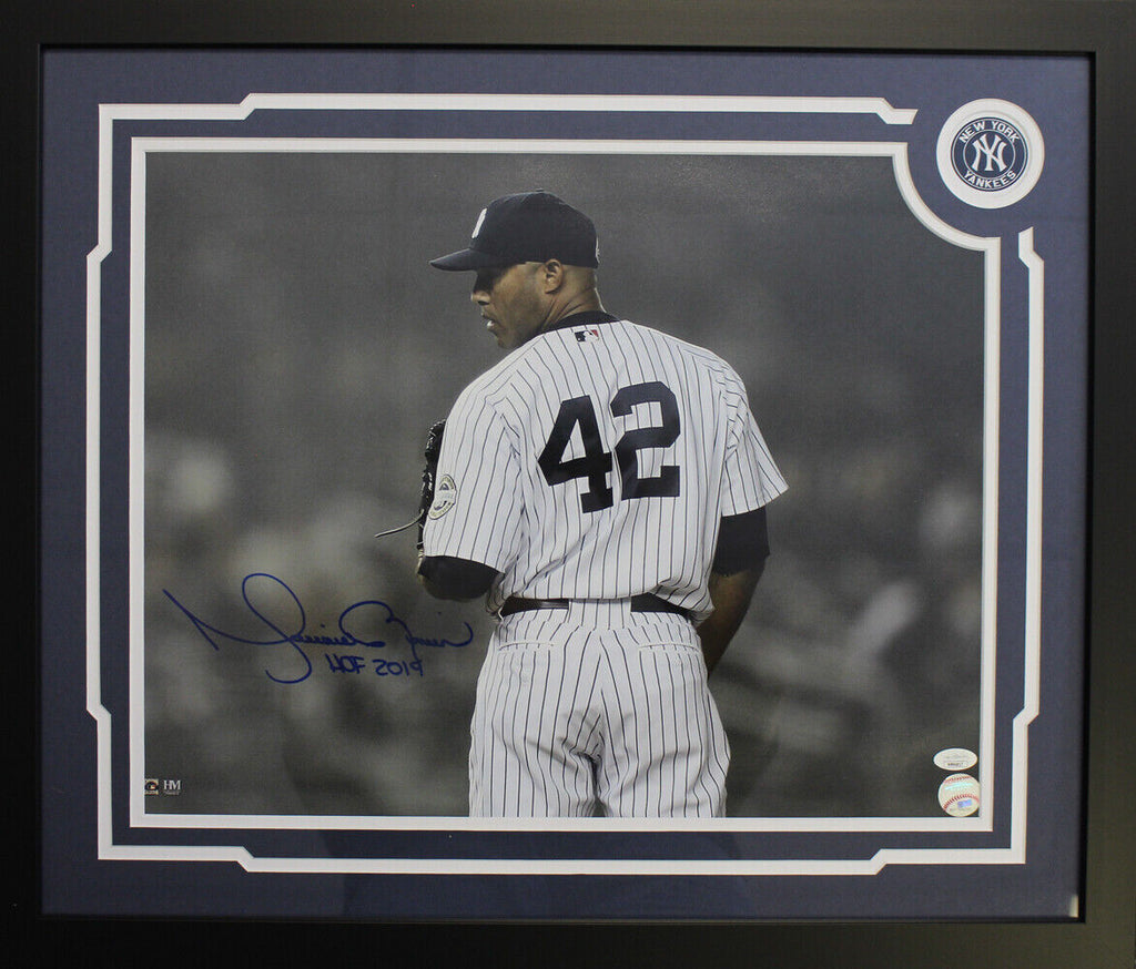 Mariano Rivera Autographed New York Yankees Framed 16x20 Photo JSA 38843 The number in the listing title is just an inventory sku for our records and is not the authentication number. The item pictured is a stock photo unless otherwise noted. This is a professionally framed 16x20 photo that was personally autographed by Mariano Rivera. Includes a certificate of authenticity from James Spence Authentication (JSA) and Denver Autographs.