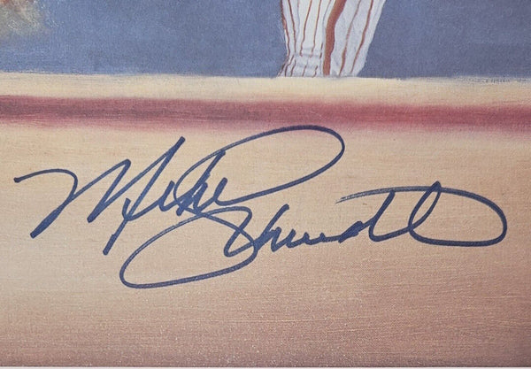 Featured is a Mike Schmidt signed 18x24 Philadelphia Phillies lithograph. This lithograph has been hand signed by Schmidt and comes with the JSA hologram. This lithograph has been professionally framed and matted and is approximately 23x29. This lithograph would make a great addition to any sports memorabilia collection! SPECIFICATIONS Autographed By: Mike Schmidt Team: Philadelphia Phillies Sport: Baseball Authentication: James Spence Authentication (JSA)