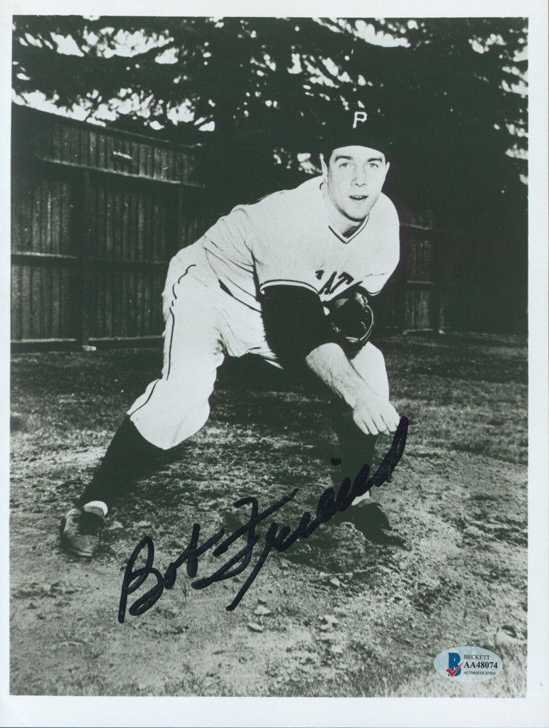 This Autographed 8x10 Black & White Photo has been Personally Signed by Bob Friend of the Pittsburg Pirates. This item is 100% Authentic to include a Certificate of Authenticity (COA) / hologram by Beckett Authentication Services. The authenticity can be verified on Beckett Authentication Services website.