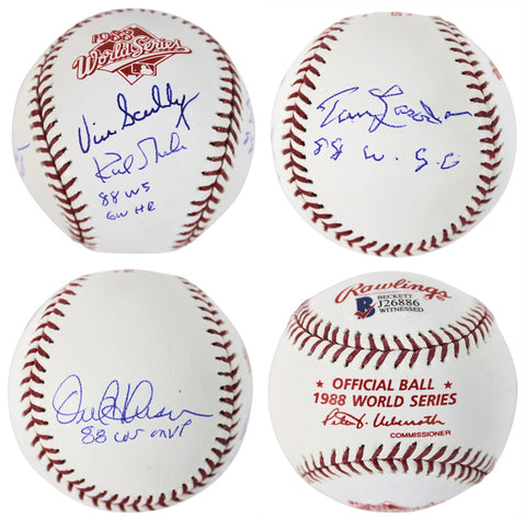 Dodgers (4) Scully, Hershiser, Lasorda & Gibson Signed 88 WS Logo Baseball BAS