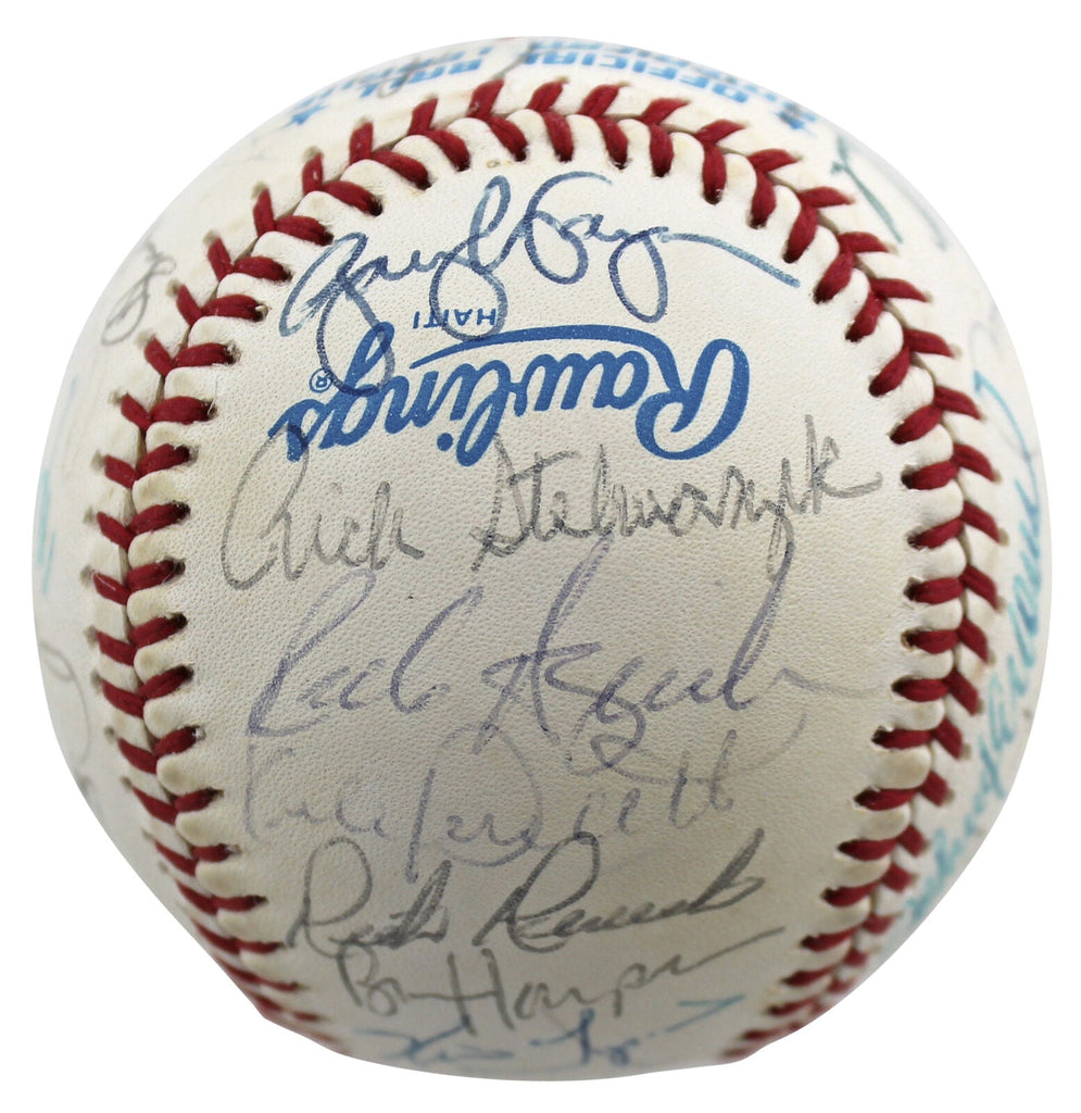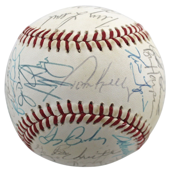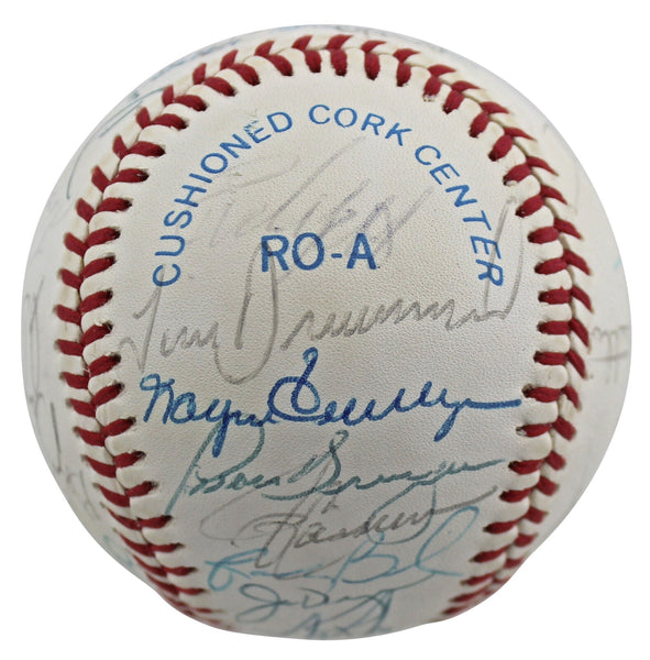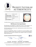 This Autographed Bobby Brown Oal Baseball has been Personally Signed by Kirby Puckett, Terry Leach, Gary Gaetti, Mark Guthrie, Shane Mack, Tom Kelly, Tim Drummond, David West, Gene Larkin, Roy Smith, Junior Ortiz, Doug Baker, Rick Aguilera, Brian Harper, Kent Hrbek & 17 more of the Minnesota Twins. This item is 100% Authentic to include a Certificate of Authenticity (COA) / hologram by Beckett Authentication Services. The authenticity can be verified on Beckett Authentication Services website.