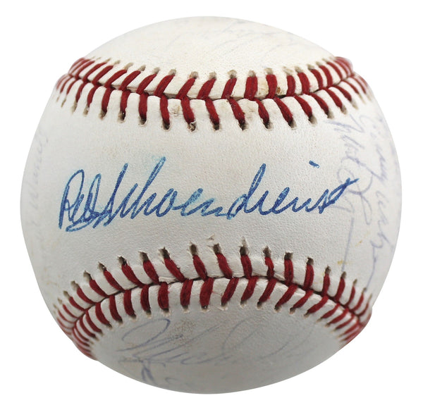 This Autographed William White Onl Baseball has been Personally Signed by Red Schoendienst, Chris Carpenter, Mark Clark, Lee Smith, Bob Tewksbury, Rex Hudler, Tim Jones, Ozzie Smith, Craig Wilson, Todd Zeile, Brian Jordan, Ray Lankford, Milt Thompson & 9 more of the St. Louis Cardinals. This item is 100% Authentic to include a Certificate of Authenticity (COA) / hologram by Beckett Authentication Services. The authenticity can be verified on Beckett Authentication Services website.