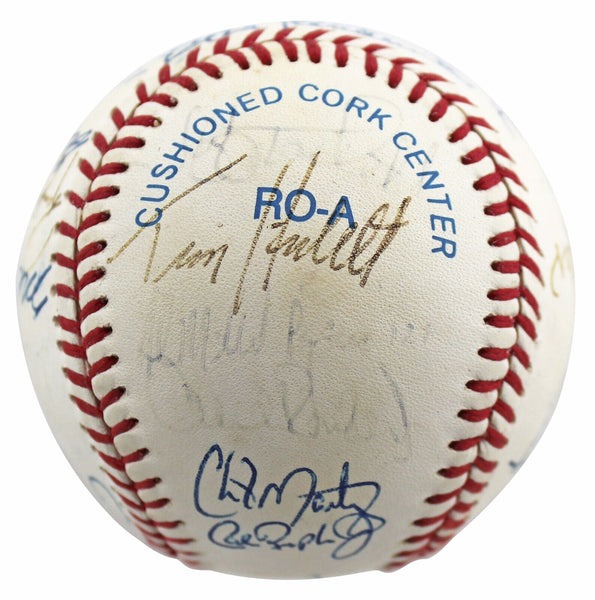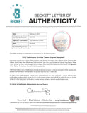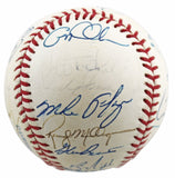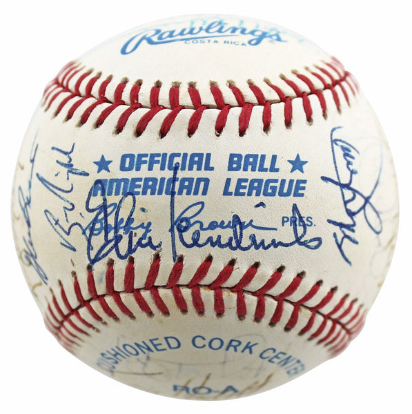 This Autographed Bobby Brown Oal Baseball has been Personally Signed by Johnny Oates, Ellie Hendricks, Jeff Tackett, Tim Hulett, Arthur Rhodes, Chito Martinez, Bob Milacki, Storm Davis, Mark Williamson, Todd Frohwirth, Sam Horn, Joe Orsulak, Leo Gomez, Greg Biagini, Gregg Olson, Mickey Tettleton, Mike Flanagan, Randy Milligan, Glenn Davis, Billy Ripken and Mark Parent. The signature of Cal Ripken Jr. has been deemed a clubhouse version of the Baltimore Orioles. This item is 100% Authentic to include a Certificate of Authenticity (COA) / hologram by Beckett Authentication Services. The authenticity can be verified on Beckett Authentication Services website.