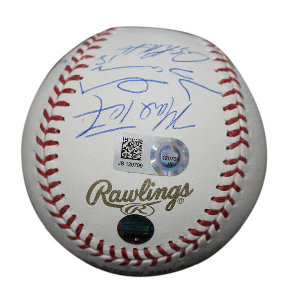 2009 New York Yankees Team Signed World Series Baseball 9 Sigs Steiner 33934 The number in the listing title is just an inventory sku for our records and is not the authentication number. This is an official 2009 World Series baseball that was personally autographed by 9 members of the New York Yankees team including Jorge Posada, Andy Pettitte, Hideki Matsui, Mariano Rivera, Mark Teixeira, Johnny Damon, Joe Girardi, Alex Rodriguez and Derek Jeter. This is the exact item that you will receive so please see pictures for condition. Includes a certificate of authenticity from Steiner Sports and Denver Autographs.